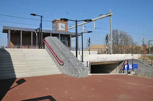 Maastricht Noord (lit. 'Maastricht North') is a railway station in the north of Maastricht, Netherlands. Construction of the station started in March 2011 and after a few delays it opened on 17 November 2013[1] on the Maastricht–Aachen railway, which is part of the Heuvellandlijn. The station features 360 car parking spaces and park and ride facilities with connections to the centre of Maastricht.