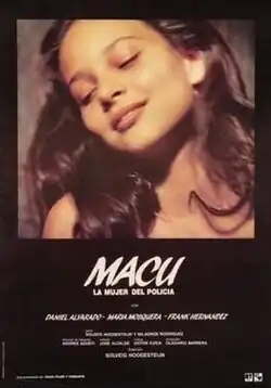 Macu, The Policeman's Woman (Spanish: Macu, la mujer del policía) is a 1987 Venezuelan film directed by the Swedish-Venezuelan filmmaker Solveig Hoogesteijn. It is also known as simply Macu and as Macu, the Policeman's Wife.[1] It is a crime drama, and based on a real story; it is also identified as the popular Venezuelan genre known as 'common crime'.[2] It tells the story of a woman who must testify against her criminal policeman husband for murdering her lover, starring Daniel Alvarado, María Luisa Mosquera and Frank Hernández.