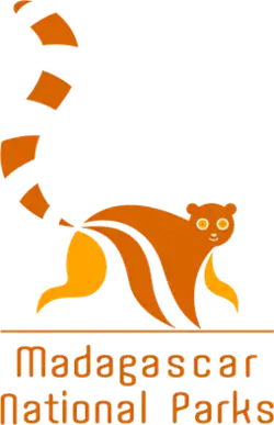The logo of Madagascar National Parks, showing the ring-tailed lemur