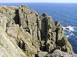 Madgy Figgy's Chair is a granite rock whose shape is reminiscent of a chair. It sits atop a tower of granite blocks, known as the Chair Ladder at Gwennap Head near St Levan in Cornwall.[1]