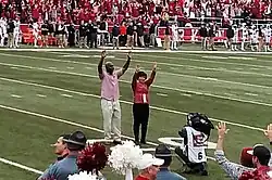 Hill waves while being honored as an SEC Football Legend on the field at Razorback Stadium[1]