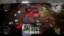 The game is, as described by its developers, an "arcade" game and simplifies much of gameplay to be more accessible to newer players.[2] There is no deck construction, and players only have access to a limited number of preconstructed decks; however, as they play and win against computer opponents, they unlock new pre-constructed decks and specific cards that can be inserted into each deck to make the deck more powerful. Tapping of lands for mana is done automatically, with the engine selecting lands in multi-colored decks based on the remaining cards in a player's hand.[2] Whenever an action is taken that other players may respond to, a brief timer is present to allow for any player action; players may pause this timer to give them more time to respond if needed. As such, play priority goes to the person who responds first, with all further actions resolved via Magic's stack rules.[2] Regardless of the game type, players get one free mulligan at the start of a match; any further requests to redraw their hand will impose Magic's standard rule of diminishing the number of cards drawn.[2]