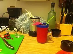 • two handled cups, called by the manufacturer "Party Mugs", which can be used to blend individual drinks (also with colored "Comfort Rings" that screw over the threads),