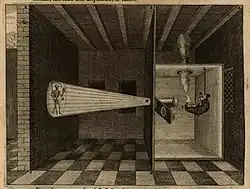 In 1668, Robert Hooke wrote about the effects of a type of magic lantern installation: "Spectators not well versed in optics, that should see the various apparitions and disappearances, the motions, changes and actions that may this way be represented, would readily believe them to be supernatural and miraculous."[54] In the same year, Francesco Eschinardi published Centuriae opticae pars altera seu dialogi optici pars tertia, which included a detailed description of the construction of the magic lantern.