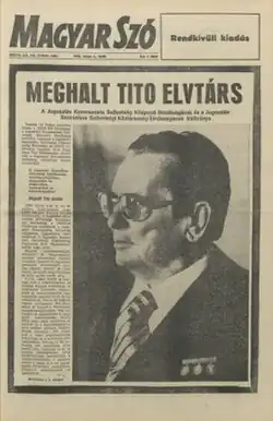 Magyar Szó (Hungarian pronunciation: [ˈmɒɟɒr ˈsoː], lit. Hungarian Word) is a Hungarian-language daily newspaper in Vojvodina, Serbia.