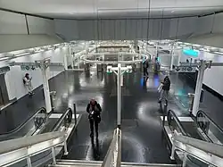 The station was designed by LIN (Finn Geipel and Giulia Andi). The design uses white corrugated metal panels on the walls, and large circular light fittings – a similar concept was also used at Barbara and Bagneux–Lucie Aubrac stations on Line 4.[10] The station's external accesses and surroundings were designed by Marc Aurel, with fine curves made of brass.[11]