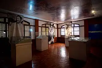 It is a two-story mansion overlooking the Paoay Lake, and consists of seven (supposedly a lucky number for Marcos) rooms, with each room having a theme of historical events from the Marcos era: Study, Agriculture, Diplomacy, OFW (overseas Filipino workers), Culture, Nation Building and Family.[1]
