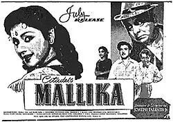 Mallika is a 1957 Indian Tamil-language film directed by Joseph Thaliath Jr. The film stars Gemini Ganesan and Padmini. It was released on 19 July 1957,[2] and remade in Hindi as Payal the same year.