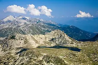 Malokamenishki Lakes (Bulgarian: Малокаменишки езера), also known as Belemetski Lakes (Белеметски езера),[1][2] are a group of 34 glacial lakes situated southwest of the main ridge of Pirin mountain range in Bulgaria. They are the source area of the river Mozgovitsa, one of the tributaries of the Sandanska Bistritsa of the Struma river basin.[2] The lake group is located in the Belemeto cirque, flanked by the main mountain ridge and the secondary ridges of Kamenitsa and Mozgovitsa, crowned by the summits of Kamenitsa Peak (2,822 m), Kralev Dvor (2,680 m), Momin Dvor (2,723 m) and Valyavishki Chukar (2,664 m).[1]