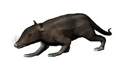 T. S. Kemp has provided a more traditional definition: "Synapsids that possess a dentary–squamosal jaw articulation and occlusion between upper and lower molars with a transverse component to the movement" or, equivalently in Kemp's view, the clade originating with the last common ancestor of Sinoconodon and living mammals.[12] The earliest-known synapsid satisfying Kemp's definitions is Tikitherium, dated 225 Ma, so the appearance of mammals in this broader sense can be given this Late Triassic date.[13][14] However, this animal may have actually evolved during the Neogene.[15]