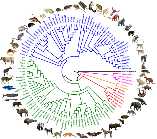 Mammal phylogeny according to Álvarez-Carretero et al., 2022:[20]