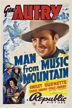 Man from Music Mountain is a 1938 American Western film directed by Joseph Kane and starring Gene Autry, Smiley Burnette, and Carol Hughes. Written by Betty Burbridge and Luci Ward, based on a story by Bernard McConville.