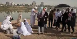 Mandaeans undergoing baptism (Masbuta) in the Karun River, Ahvaz, Iran
