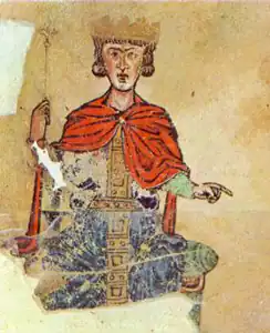 Manfred (Sicilian: Manfredi di Sicilia; 1232 – 26 February 1266) was the last King of Sicily from the Hohenstaufen dynasty, reigning from 1258 until his death. The natural son of the Holy Roman Emperor Frederick II,[1] Manfred became regent over the Kingdom of Sicily on behalf of his nephew Conradin in 1254. As regent he subdued rebellions in the kingdom, until in 1258 he usurped Conradin's rule. After an initial attempt to appease Pope Innocent IV, he took up the ongoing conflict between the Hohenstaufens and the papacy through combat and political alliances. He defeated the papal army at Foggia on 2 December 1254. Excommunicated by three successive popes, Manfred was the target of a Crusade (1255–66)[2] called first by Pope Alexander IV and then by Urban IV. Nothing came of Alexander's call, but Urban enlisted the aid of Charles of Anjou in overthrowing Manfred. Manfred was killed during his defeat by Charles at the Battle of Benevento, and Charles assumed kingship of Sicily.