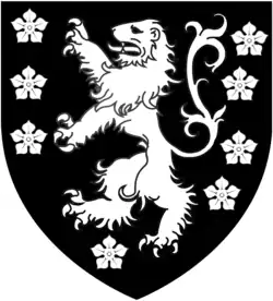 Arms of Clifton of Clifton, Nottingham: Sable semée of cinquefoils and a lion rampant argent