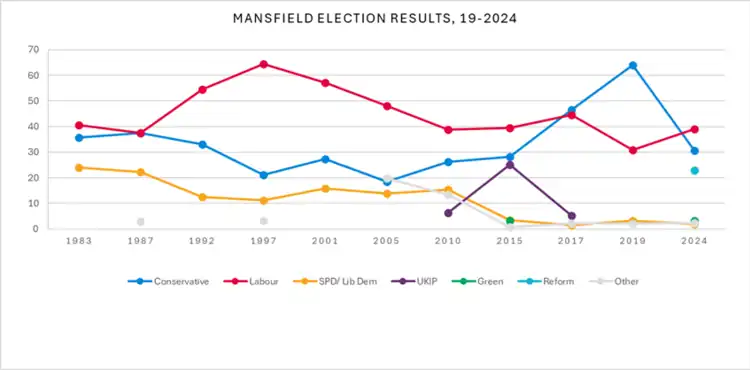 The Mansfield council area voted with more than 70% to Leave the European Union in the 2016 referendum. In 2019, the Conservatives received 63.9% of the vote in the formerly safe Labour constituency.