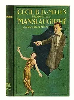 Manslaughter is a 1922 American silent drama film directed by Cecil B. DeMille and starring Thomas Meighan, Leatrice Joy, and Lois Wilson. It was scripted by Jeanie MacPherson adapted from the novel of the same name by Alice Duer Miller. Art direction and costumes for the film were done by Paul Iribe.[2]