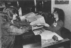 Airline ticket agent at work. (1992)