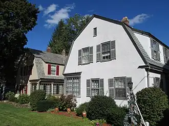 The Maple Street properties are ten nearly identical wood-framed gambrel-roofed Colonial Revival (Dutch Colonial) cottages, which the company intended as housing for its foremen. All are oriented with a gable end to the street, with the main entrances of the houses on the sides, facing each other in pairs. Nominally 1+1⁄2 stories tall, they feature long dormers in their roof line that create a full second story inside. All feature a slate roof, stucco exterior, and an enclosed porch. The design work for them was done by Loring & Leland of Boston, who are known to have designed other worker housing areas.[2]