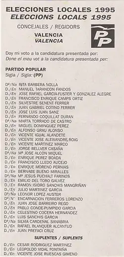 - ^ El Comité Electoral de Valencia Ciudad aprueba la propuesta de candidatura municipal al Ayuntamiento de Valencia (in Spanish)