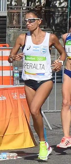 María de los Ángeles Peralta (born 30 November 1977) is an Argentine middle and long distance runner.[1][3][4] She competed in the marathon at the 2012 Summer Olympics, placing 82nd with a time of 2:40:50.[5] She did not finish her 2016 Olympic marathon.[6]