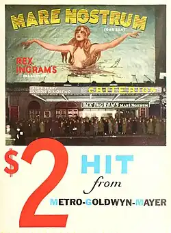 Mare Nostrum is a 1926 American silent war drama film directed by Rex Ingram. It was the first production made by Ingram while in voluntary exile[1] and stars Ingram's wife, Alice Terry. The film is set during World War I, and follows a Spanish merchant sailor who becomes involved with a German spy. It is based on the novel of the same name by Vicente Blasco Ibáñez. Long thought lost, the film has recently been re-discovered and restored.