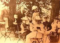 Margarethe, front, looking into the camera with the von Reinken family, circa 1890