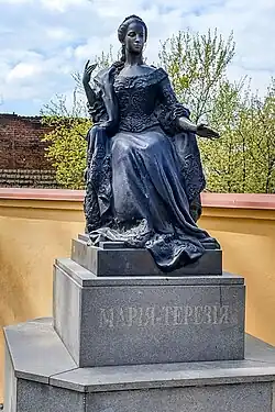 The construction of the square with a garden was aimed in order to provide the panoramic view of the cathedral and to keep in memory Empress Maria Theresa and other historical figures that mostly contributed to the development of the Castle Quarter[2]