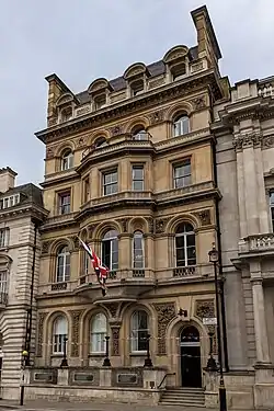 Mark Masons' Hall also contains the administration of the Royal Order of Scotland for London,[3] although not for Provinces elsewhere in England and Wales. In addition, there are two Order of Knight Masons councils meeting in the building, although all administration for the Order is carried out in Dublin; however, during 2016 a province for England and Wales was created, so the administration will be dealt with in England.[4] There is also an unofficial connection with Ye Antient Order of Noble Corks, an informal "fun" degree dedicated to charitable fund raising, which was once strongly associated with Mark Masonry, as the members of the Great Board of Corks traditionally used to be senior Mark Master Masons.