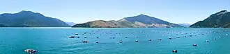 ![]() The Marlborough Sounds seen from the Wellington–Picton ferry | |