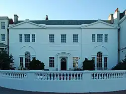A red-brick building was constructed on the site in the 1760s by local inn owner Sam Shergold.[1] In 1786, the building was bought by statesman William Gerard Hamilton from the Duke of Marlborough.[2] It was Hamilton who employed Robert Adam to change the house drastically into neoclassical style.[3] Marlborough House was then known as Grove House and the Prince of Wales stayed here in 1783, 1789, and 1795, whilst his Royal Pavilion was being renovated by John Nash.[2][4] The Prince of Wales (later King George IV) stayed with his friend Hamilton for three days in 1789, and in June 1795 stayed there for three weeks with his new wife, Princess Caroline of Brunswick.[5][6]