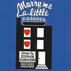 Marry Me a Little is a musical with lyrics and music by Stephen Sondheim, conceived by Craig Lucas and Norman René. The revue sets songs cut from Sondheim's better-known musicals, as well as from his then-unproduced musical Saturday Night, to a dialogue-free plot about two lonely New York single people, who express their passions, fantasies and longings during an evening in their separate one-room apartments. For the purposes of a unique stage convention, both apartments are merged into one and both characters inhabit the same space. Although they never meet during the course of the musical, they occasionally interact as fantasized romantic companions or counterpoints.
