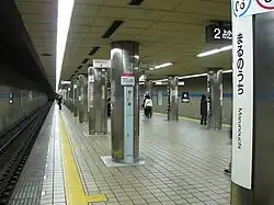 Marunouchi Station (丸の内駅, Marunouchi-eki) is an underground metro station located in Naka-ku, Nagoya, Aichi Prefecture, Japan operated by the Nagoya Municipal Subway.[1] The station is an interchange station between the Tsurumai Line and the Sakura-dōri Line, and is located 6.3 rail kilometers from the terminus of the Tsurumai Line at Kami-Otai Station and 2.4 rail kilometers from the terminus of the Sakuradōri Line at Taiko-dori Station.