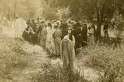 Charles Urban, the Anglo-British promoter of the Kinemacolor process of making color motion pictures, acquired worldwide rights to Maurice Maeterlinck's play Mary Magdalene with plans to produce a color film. Maeterlinck's mistress Georgette Leblanc, who had appeared in the title role of the original production of play, was retained to star in the movie.[3] Although Urban planned an Autumn 1913 release in London, and actual filming did take place in Europe, a final product never reached the screen. Instead, Aubrey Kennedy of Kennedy Features in Los Angeles, California, released his own version of Mary Magdalene in February 1914 that was filmed at cameraman James Crosby's J.A.C. Studio near downtown Los Angeles.[4][5]