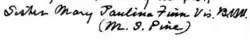 Mary Paulina Finn (January 1, 1842 – February 28, 1935), known to the literary world by her pen name, M. S. Pine, was a Roman Catholic nun at the Georgetown Visitation Monastery in Washington, DC.[1] Known as Sister Paulina, she was a playwright, poet, and author, and she headed the school's English Department for 50 of her 68 years at Visitation.[2]