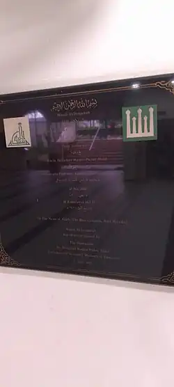 A commemorative plaque from the year 2000 at Al-Istiqamah Mosque, honouring the founding of the mosque in 1997–1999.