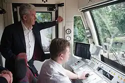 On 10 September 2016, on the City Day, in the presence of Mayor Sergey Sobyanin and President Vladimir Putin, passenger traffic of electric trains was opened on the Moscow Central Circle (MCC), which was previously used as a railway line for freight transport. MCC includes 31 stations with transfers to 10 metro lines and 9 radial railway lines. The MCC is integrated with the Moscow metro for fare collection and transfers, which creates a single system with the metro.[37][38][39][40]
