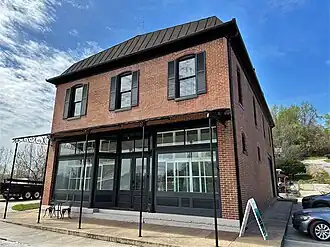 The building is situated on the corner of Main and Washington Streets. (Now 500 Walnut Street). The brick building is one of only two commercial brick structures in the town.