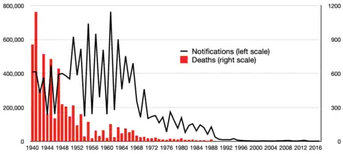 89. ^ "Measles notifications and deaths in England and Wales: 1940 to 2017". GOV.UK. Archived from the original on 25 July 2019. Retrieved 1 October 2019.