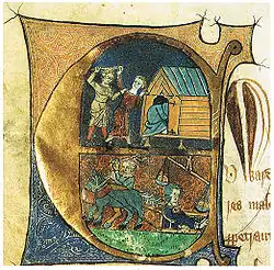 Urban cookshops that catered to workers or the destitute were regarded as unsavory and disreputable places by the well-to-do and professional cooks tended to have a bad reputation. Geoffrey Chaucer's Hodge of Ware, the London cook from the Canterbury Tales, is described as a sleazy purveyor of unpalatable food. French cardinal Jacques de Vitry's sermons from the early 13th century describe sellers of cooked meat as an outright health hazard.[56] While the necessity of the cook's services was occasionally recognized and appreciated, they were often disparaged since they catered to the baser of bodily human needs rather than spiritual betterment. The stereotypical cook in art and literature was male, hot-tempered, prone to drunkenness, and often depicted guarding his stewpot from being pilfered by both humans and animals. In the early 15th century, the English monk John Lydgate articulated the beliefs of many of his contemporaries by proclaiming that "Hoot ffir [fire] and smoke makith many an angry cook."[57]