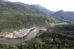 Ninety-four percent of the land of Megantoni District is protected for conservation or allocated to indigenous people. The majority of this land is "almost untouched" tropical rainforest and Peruvian Yungas characteristic of the Amazon Basin and the eastern flanks of the Andes.[2] Protected lands include the Pongo de Mainique, a scenic water gap where the Urubamba River cuts through the Vilcabamba mountain range on the southern border of Megantoni. East of the Pongo, the Megantoni National Sanctuary straddles the border with Echarate. The Kugapakari-Nahua-Nanti Indigenous Territorial Reserve covers most of the eastern one-half of the district. The Otishi National Park and the Machiguenga Communal Reserve straddle the western border of the district. Both the reserves were created to protect the lands and the "voluntary isolation" of some groups of indigenous people.[3]