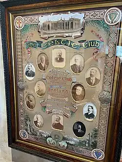 Founded on 26 September 1887, the club was originally a semi-political association, supportive of Irish Home Rule among Melbourne's sizeable Irish population; and championing the rights of Irish Australians in an establishment otherwise dominated by the Anglo-Saxon traditions of Great Britain and its colonies.[1] Reflecting this political background, the original name of the club was the 'Celtic Home Rule Club'.[2][3]