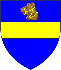 Canting arms of Baring: Azure, a fesse or in chief a bear's head (couped) proper muzzled and ringed of the second