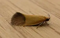 Merocroca automima is a moth of the family Oecophoridae. It is found in southeastern Australia. Adults are primarily yellow or light brown in coloration with large brown distal areas on the forewings and dark brown hindwings. Most adult activity occurs during the months of October and November.[1][2]