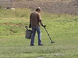 If the meteorite is of the iron or stony iron variety a magnet (usually mounted at the end of a stick) will pick it up from the soil surface or a metal detector will often detect it through many inches of soil. Stony meteorites —which make up the large majority of meteorites that fall— may not have a high enough nickel iron content to set off a metal detector. Large and very sensitive metal detectors may be used as well as ground-penetrating radar, lidar, and even landmine detectors.[1]