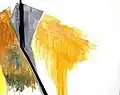 Gross's works are imbued with the light and spirit. They are minimalist, but never pure abstraction, always tied to natural form and laden with feeling.[2] In his early paintings, Gross simplified form in order to concentrate on proportion, broad areas of color, and the size and placement of each element. This reductive process was also notable in his sculptures, whether in painted iron or other materials such as white concrete. In later paintings, he often juxtaposed large off-white panels with patches of tone, adding textured materials such as wooden beams, burlap and rope. Gross's rough, freely-brushed surfaces, along with the use of soft pastel coloring, conjure up images of the Israeli landscape.[3]