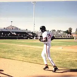 Jordan further surprised the sports world by signing a Minor League Baseball (MiLB) contract with the Chicago White Sox on February 7, 1994.[128] He reported to spring training in Sarasota, Florida, and was assigned to the team's minor league system on March 31.[129] Jordan said that this decision was made to pursue the dream of his late father, who always envisioned his son as a Major League Baseball (MLB) player.[130] The White Sox were owned by Bulls owner Jerry Reinsdorf, who continued to honor Jordan's basketball contract during the years he played baseball.[131]