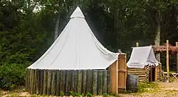 The Native American Village ("Wigwam Village") represented the Anishinabe Native Americans during their first contact with Europeans in the mid-1600s and how they lived. They spoke the Algonquin language. These Native American people assembled the Council of Three Fires and are today the Michigan tribes of the Odawa, Potawatomi, and Ojibwe Chippewa. Attendees were asked to participate in learning how they prepared food, made clothing for their families, and built shelter for protection.[19][27]