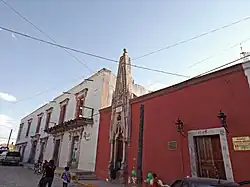 Hidalgo was the second-born child of Cristóbal Hidalgo y Costilla Espinoza de los Monteros and Ana María Gallaga Mandarte Villaseñor, both criollos.[8] On his maternal side, he was of Basque ancestry. His most recent identifiable Spanish ancestor was his maternal great-grandfather, who was from Durango, Biscay.[9] On his paternal side, he descended from criollo families native to Tejupilco, which were well-respected within the criollo community.[10] Hidalgo's father was an hacienda manager in Valladolid, Michoacán, where Hidalgo spent the majority of his life.[11][12] Eight days after his birth, Hidalgo was baptized into the Catholic faith in the parish church of Cuitzeo de los Naranjos.[13] Hidalgo's parents had three other sons; José Joaquín, Manuel Mariano, and José María,[8] before their mother died when Hildalgo was nine years old.[14] A half-brother named Mariano was born later.[15]
