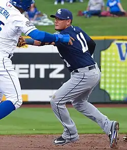 After the 2012 season, Rojas became a free agent and signed with the Los Angeles Dodgers organization.[3] He spent the 2013 season with the Chattanooga Lookouts of the Double–A Southern League, where he hit .233 in 130 games.[4] In 2014, he received a non-roster invite to Major League spring training, where he was given a chance to compete for the vacant second base job.[5][6] The Dodgers assigned him to the Triple–A Albuquerque Isotopes to start 2014, where he hit .302 in 51 games.[4]